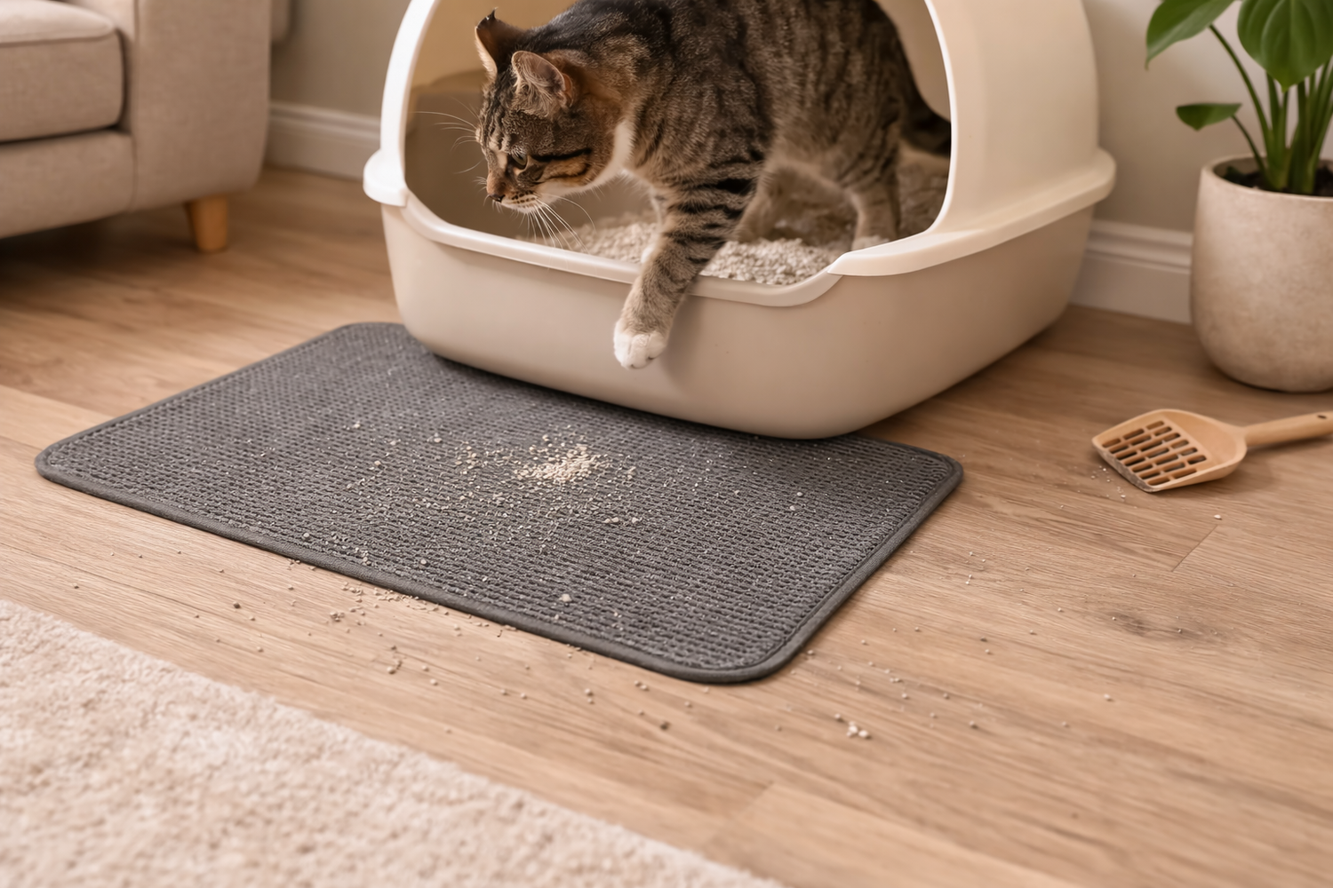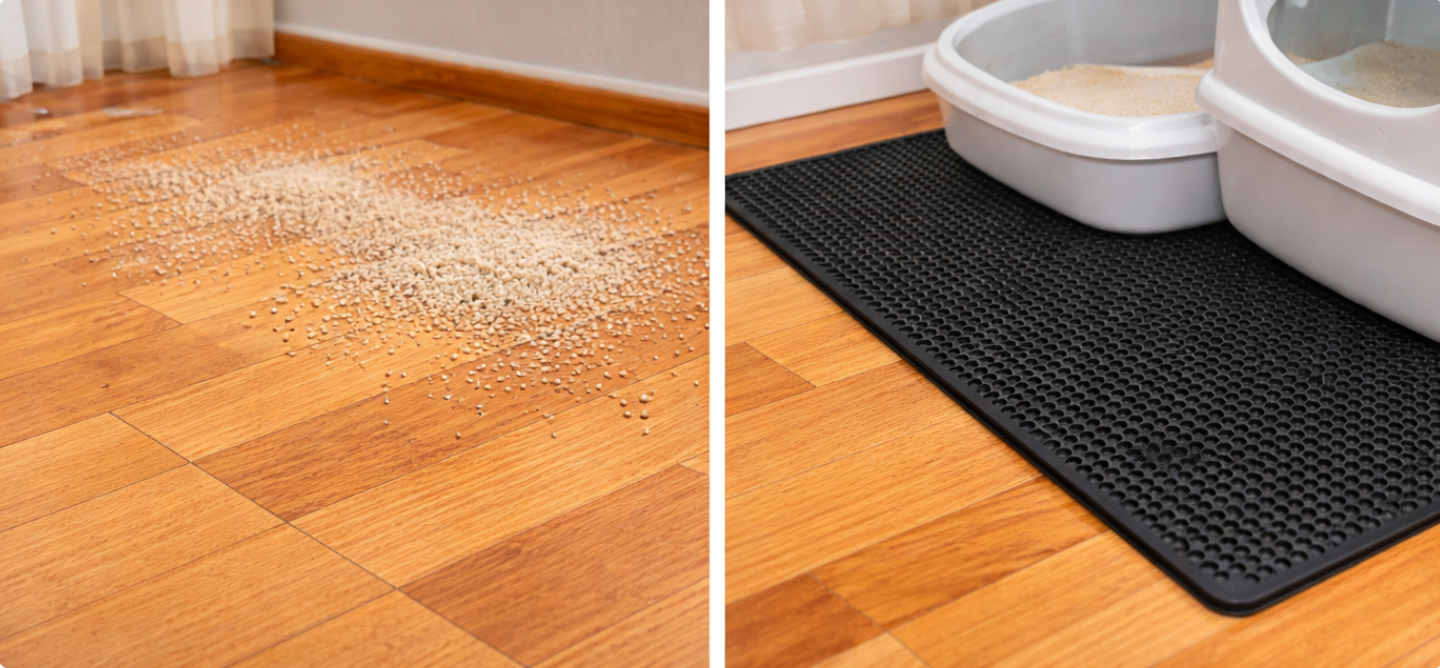 "I was constantly stepping on litter around the litter box and it drove me crazy. This mat actually traps it all. Now I just lift it and pour the litter back. Cleaning takes seconds."